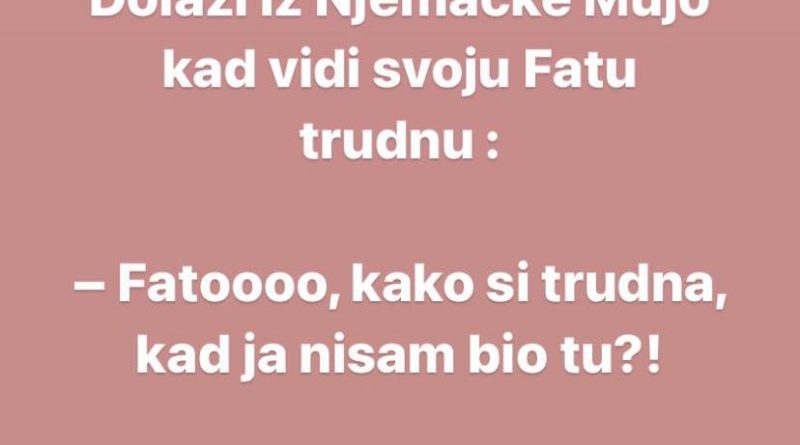 Read moreDolazi iz Njemačke Mujo kad vidi svoju Fatu trudnu : – Fatoooo, kako si trudna, kad ja nisam bio tu?!