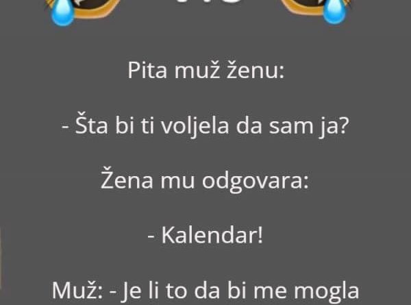Read morePita muž ženu: Šta bi ti voljela da sam ja? Žena mu odgovara: Kalendar! Muž: – Je li to da