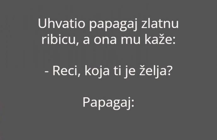 Read moreUhvatio papagaj zlatnu ribicu, a ona mu kaže: – Reci, koja ti je želja? Papagaj: Koja ti je želja?