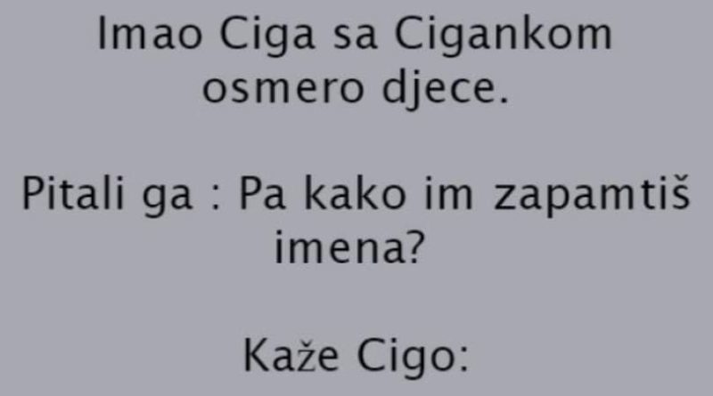 Read moreImao Ciga sa Cigankom osmero djece. Pitali ga : Pa kako im zapamtiš imena? – Svi su mi na J, samo